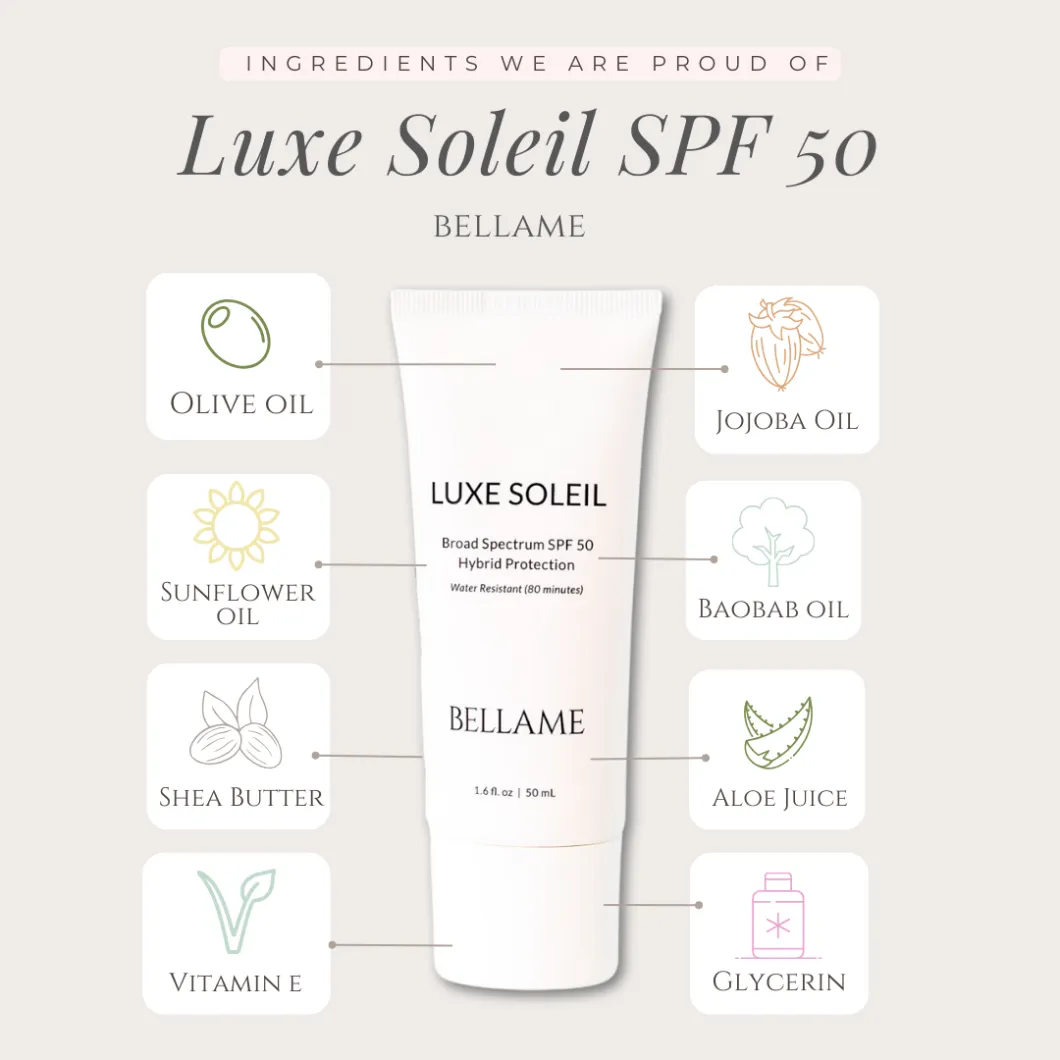 SPF is essential to protect the health and vibrancy of your skin. This Luxe Soleil SPF 50 also serves as a moisturizer or makeup primer. It's a hybrid formula that's gentle on sensitive skin. And it has a secret ingredient for balancing oily skin: aloe!